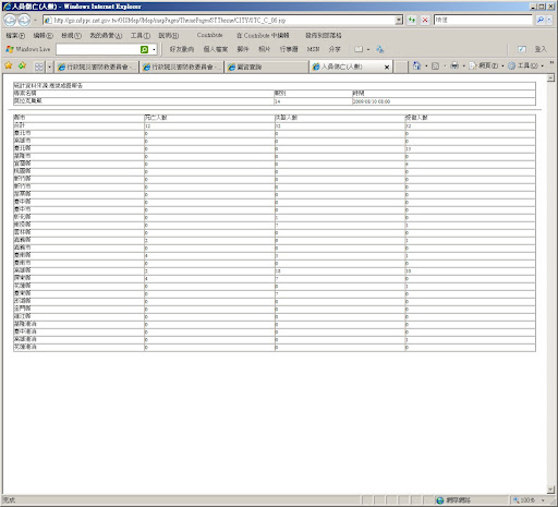這個是 消失的「災變時網頁」 內下方「全台人員傷亡統計」資料庫的資料畫面擷取,8/9下午2點的資料是空的,一直到傍晚才有資料進去