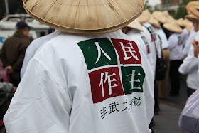 12/20(週日)在台中市舉辦的「人民要發聲大遊行」晚會會場,台灣大地文教基金會於合法申請的路權內,進行晚會相關準備,多次得到警察「關愛的眼神」,要大地不可在路邊活動。
