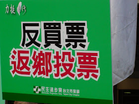 今日包含民進黨台北市黨部、公投護台灣聯盟、客社、北社及挺扁聯盟等社團,動員數十名志工,以旗幟及標語整齊的隊伍繞行台北車站,沿途向民眾柔性廣播並發送印有民進黨縣市長參選人的傳單,拜託民眾支持「返鄉投票、力挺台灣、支持民進黨」及「反賄選、反買票」。