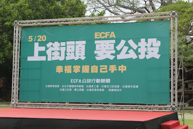 『ECFA 公投行動聯盟』今天(5/7)來到台南市忠義國小操場前,舉行第二場『520上街頭 要公投』的暖身靜坐。包括台北水噹噹姊妹聯盟、謝長廷、李應元、立委賴清德、陳亭妃、王定宇議員、邱莉莉議員、趙天麟議員、雲林毛巾工會、及許多台南縣市民意代表公職等,都到場聲援並參與靜坐,鼓勵民眾 520上街頭 要公投。