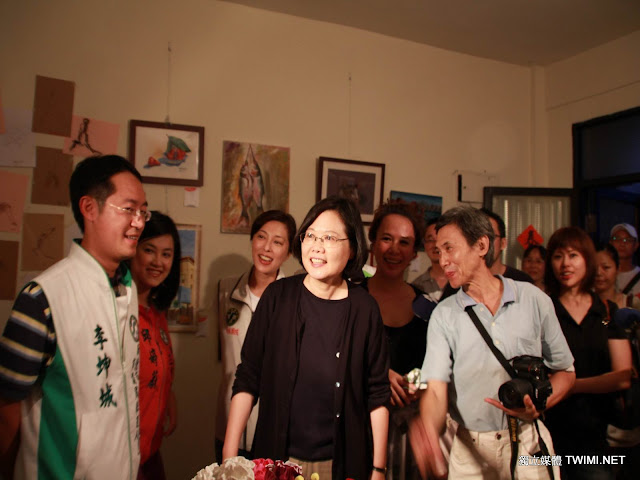 新北市長參選人民進黨主席蔡英文今晚(7/10)在三重社區大學主任張琦凰陪同下,前往在三重『空軍三重一村』舉辦的『藝文遶鏡 搖滾文武將』藝文祭參觀,現場攤販熱情打招呼,爭相拍照簽名大喊偶像凍蒜,蔡英文也參觀各項藝文展及在舞台前觀看歌唱表演。