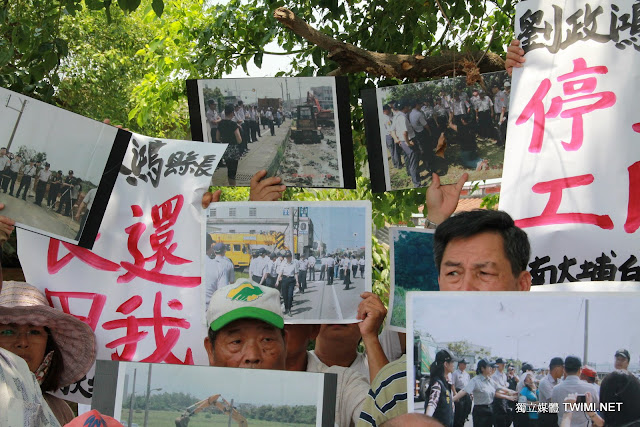太讚ㄌ!!越來越多人與這些農民站在一起ㄌ....我們苗栗鄉親應該發起罷免縣長劉政鴻...苗栗還有太多ㄉ良田,苗栗鄉親今天不站出來伸援大埔與後龍灣寶農民.....改天劉政鴻還會用各種不法ㄉ手段,去霸佔公館及大湖...等等苗栗農民更多人ㄉ土地...我們譴責這種不肖政客,每天只忙著做秀~狗官你看見..心在淌血,淚流滿面..ㄉ弱勢農民嗎??罷免苗栗縣長大家一起響應.....要團結!!