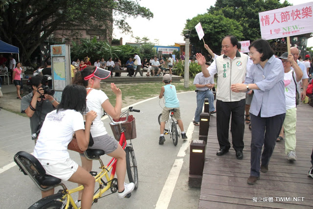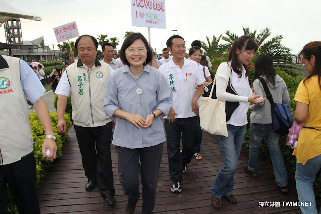 傳統習俗上的七夕情人節即將到來,為分享愛與幸福,新北市長參選人民進黨主席蔡英文今(8/14)日下午特別到八里渡船頭商圈發送 1000個象徵幸福承諾的『I LOVE NEW 小徽章』,沿途受到熱烈歡迎,遊客及支持者爭相索取簽名及合照。蔡英文致詞表示,幸福是一種感覺、也是一種滿足,但是對執政者而言,幸福的工程卻是一個挑戰。