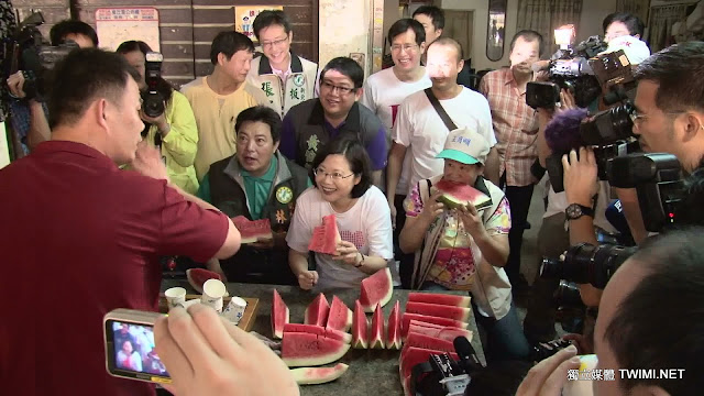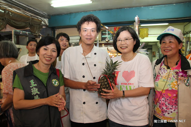新北市長參選人民進黨主席蔡英文今(8/6)日上午帶著數十位志工媽媽們手持標語牌,啟動首場『蔡市長掃菜市場』活動,現場氣氛熱鬧,民眾熱情握手合影、鞭炮聲四起,支持者高呼蔡市長凍蒜,許多攤商送上菜頭(好彩頭)、鳳梨(旺來)表示祝福。蔡英文表示,今天起她將啟動 100場掃菜市場活動,未來除了傳統市場外,也包括夜市,期待接下來的時間,能更貼近人民生活,與所有新北市民在一起。
