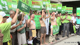 公投護台灣聯盟總召蔡丁貴今天下午帶領約百名民眾持續在立法院外抗議,蔡丁貴呼籲兩岸經濟合作架構協議(ECFA)絕對不能夠通過,他並帶頭脫掉上衣與褲子只剩下內褲和鞋襪站在群賢樓外開記者會。蔡丁貴表示,ECFA如果通過台灣會輸到脫光光,他也呼籲民進黨應退席,不要參與 ECFA的表決,否則他將連內褲都脫掉,到凱達格蘭大道上抗議。