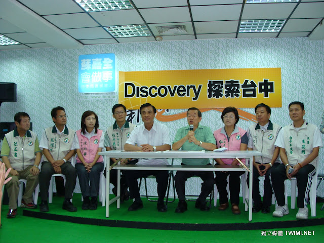 蘇嘉全和謝長廷針對大台中捷運的議題,今日共同召開記者會。謝長廷說,捷運綠線在去年的今天正式動土,但一年來土建和機電工程沒有發包、沒有動工、工程進度落後超過31%,只是做了一些樹木遷移的工作,應該監督市府的民意機構對市長太寬容,以致犧牲了廣大市民的權益,讓捷運綠線成為台中的「詐胡線」。