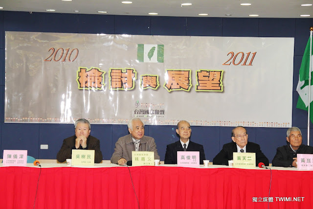 台灣國家聯盟今日(1/12)上午在台大校友會館辦了一場『2010檢討與 2011展望』座談,由召集人姚嘉文主持,由前國策顧問黃天麟、高俊明牧師、陳儀深教授、台灣社社長吳樹民、無米樂崑濱伯等人與談,民進黨副秘書長高建智、新科台北市副議長周柏雅及許多本土社團代表皆出席與會。